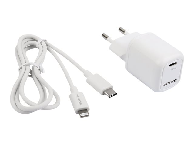 Essentials - Strömadapter - 20 Watt - PD (24 pin USB-C) - på kabel: Lightning - vit
