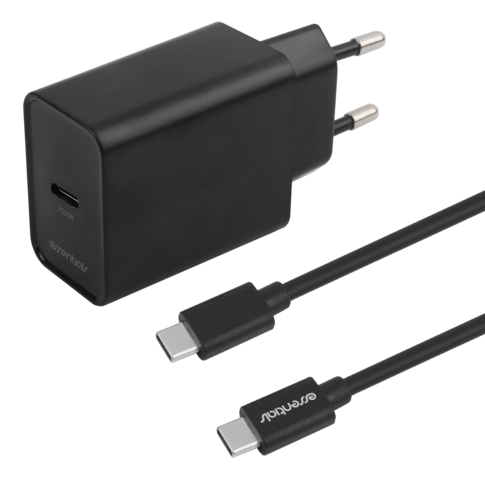 Wall charger USB-C PD 20W, 1 m USB-C/C cable,black