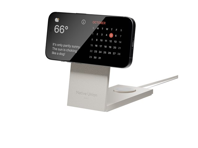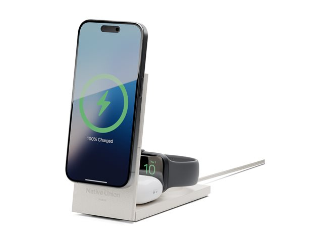 | Produktbeskrivning | Native Union - Trådlöst laddställ - rise, 3-in-1 + växelströmsadapter - 15 Watt - 2.33 A - sandsten - Internationellt |