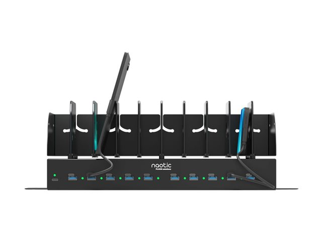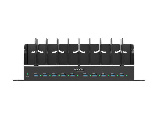 Produktbeskrivning | Naotic Plug In - Laddningsstation - 30 Watt - 2.5 A - PD - 20 utdatakontakter (10 x 4-stifts USB typ A, 10 x 24 pin USB-C) - på kabel: USB-C - svart |