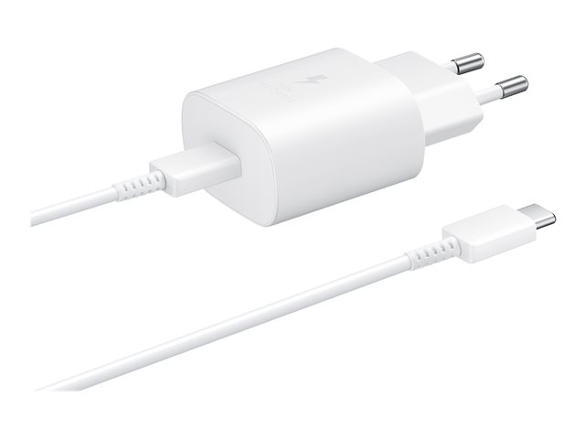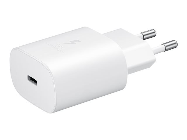 Produktbeskrivning | Samsung Fast Charging Wall Charger EP-TA800 - Strömadapter - 25 Watt - 3 A - Ultra Fast Charge (24 pin USB-C) - på kabel: USB-C - vit - för Galaxy A20, A50, A70, A8s, M30, M40, Note10, S20, S20 5G, S20+ 5G, Z Flip, Z Flip 5G |