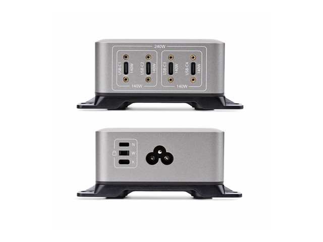 | Produktbeskrivning | StarTech.com 4-Port USB-C Charger, 240W Total, Single Port 140W EPR - Strömadapter - med ytsmonteringsfäste - 240 Watt - 5 A - Strömmatning 3.1 - 4 utdatakontakter (USB-C) |