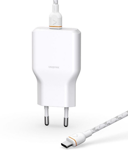 Unisynk - Strömadapter - slimmad, kit, G3 - (USB-C-kabel) - 36 Watt - USB BC 1.2, PD 2.0, PD 3.0 - 2 utdatakontakter (24 pin USB-C) - vit