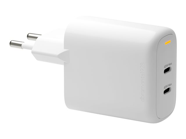 dbramante1928 re-charge - Strömadapter - 45 Watt - PD, QC - 2 utdatakontakter (24 pin USB-C) - vit - Europa