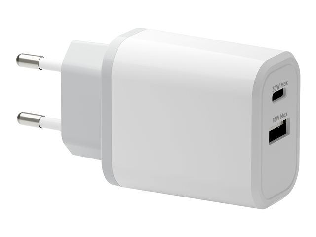 dbramante1928 re-charge - Strömadapter - 30 Watt - 2 utdatakontakter (24 pin USB-C, USB typ A) - vit - Europa