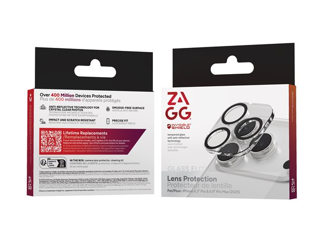 | Produktbeskrivning | ZAGG InvisibleShield Glass Elite - Linsskydd för mobiltelefon - svart - för Apple iPhone 17 Pro, 17 Pro Max |