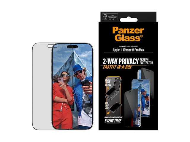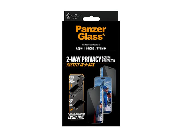PanzerGlass - Skärmskydd för mobiltelefon - ultra-wide fit with FASTFIT IN-A-BOX - glas - med sekretessfilter - 2-vägs - ramfärg svart - för Apple iPhone 17 Pro Max