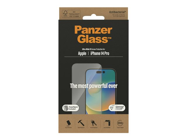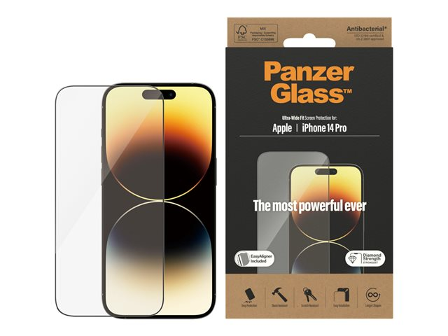 PanzerGlass - Skärmskydd för mobiltelefon - ultrabred passning - glas - ramfärg svart - för Apple iPhone 14 Pro