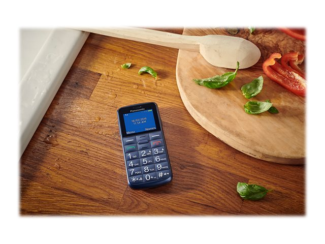 Produktbeskrivning | Panasonic KX-TU110 - Funktionstelefon - dual-SIM - microSD slot - LCD-skärm - 128 x 160 pixlar - rear camera 0,08 MP - blå |