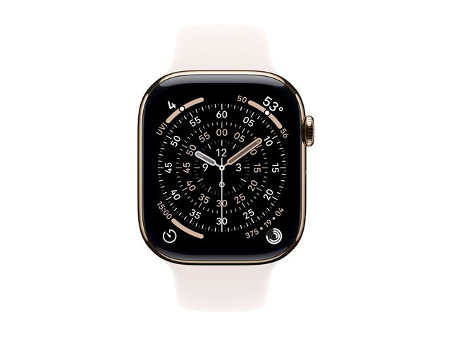 | Produktbeskrivning | Apple Watch Series 11 (GPS + Cellular) - 46 mm - guld titan - smart klocka med sportband - fluoroelastomer - lätt rouge - bandstorlek: S/M - 64 GB - Bluetooth, LTE, Wi-Fi 4, UWB - 5G - 43.1 g |