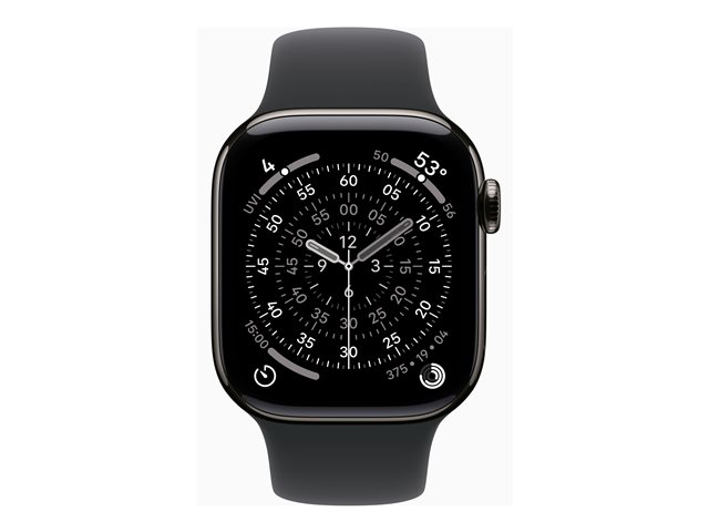 | Produktbeskrivning | Apple Watch Series 11 (GPS + Cellular) - 42 mm - skiffer titan - smart klocka med sportband - fluoroelastomer - svart - bandstorlek: S/M - 64 GB - Bluetooth, LTE, Wi-Fi 4, UWB - 5G - 34.6 g |