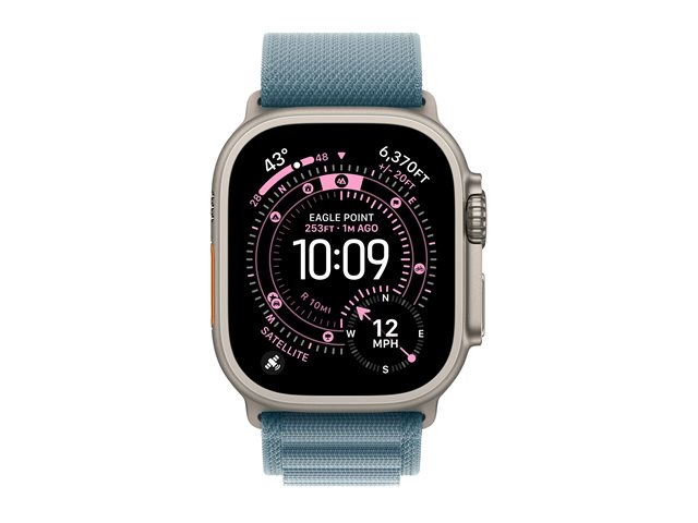 Produktbeskrivning | Apple Watch Ultra 3 - 49 mm - naturlig titan - Ja smart klocka med Alpine Loop - textil - ljusblå - bandstorlek: M - 64 GB - LTE, NFC, Wi-Fi 4, UWB, Bluetooth - 5G - 61.6 g |