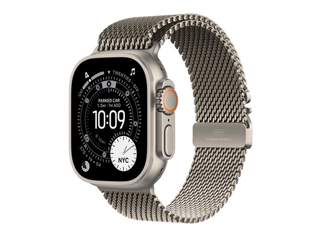 | Produktbeskrivning | Apple Watch Ultra 3 - 49 mm - naturlig titan - Ja smart klocka med milanesisk loop - bandstorlek: M - 64 GB - LTE, NFC, Wi-Fi 4, UWB, Bluetooth - 5G - 61.6 g |