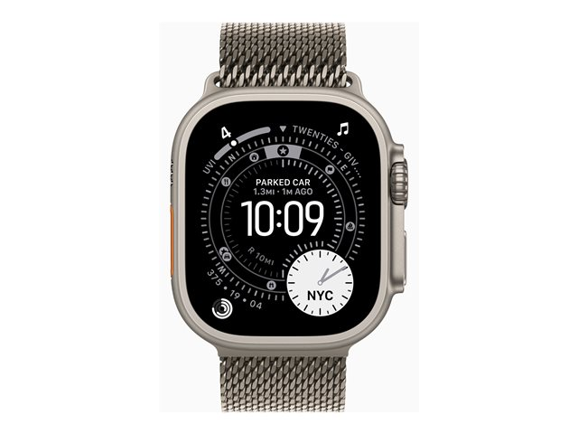 | Produktbeskrivning | Apple Watch Ultra 3 - 49 mm - naturlig titan - Ja smart klocka med milanesisk loop - bandstorlek: S - 64 GB - LTE, Wi-Fi 4, UWB, Bluetooth, NFC - 5G - 61.6 g |