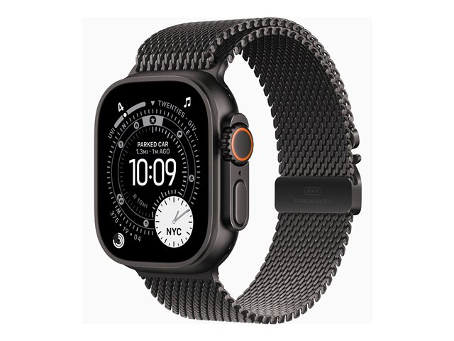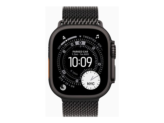Produktbeskrivning | Apple Watch Ultra 3 - 49 mm - svart titan - Ja smart klocka med milanesisk loop - bandstorlek: S - 64 GB - LTE, Wi-Fi 4, UWB, Bluetooth, NFC - 5G - 61.8 g |