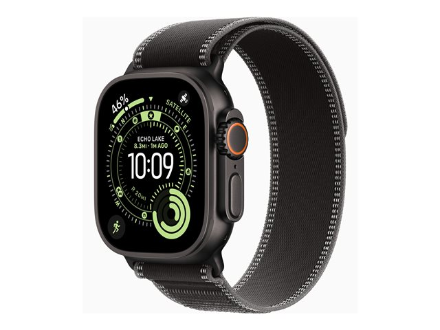 | Produktbeskrivning | Apple Watch Ultra 3 - 49 mm - svart titan - Ja smart klocka med Trail Loop - nylonväv - svart/kolsvart - bandstorlek: S/M - 64 GB - LTE, Wi-Fi 4, UWB, Bluetooth, NFC - 5G - 61.8 g |
