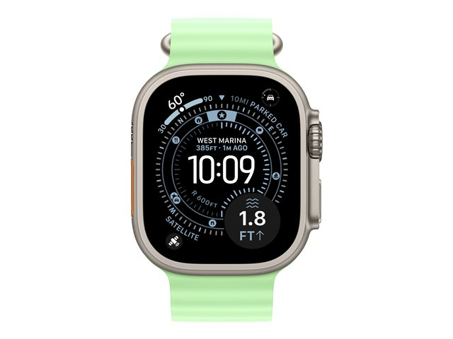 Produktbeskrivning | Apple - Band för smart klocka - 49 mm, naturlig titanfinish - 130 - 200 mm - neongrön - för Watch Hermès Series 9, SE 3, Series 10, Series 11, Series 8, Series 9, Ultra 2, Ultra 3 |