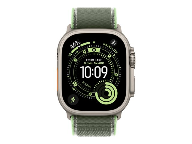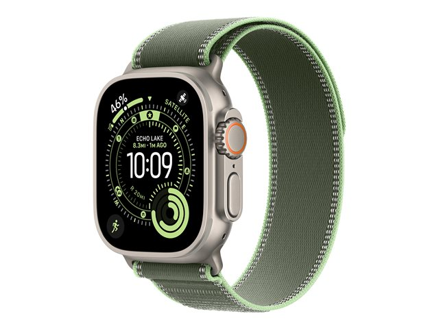 Produktbeskrivning | Apple - Slinga för smart klocka - 49 mm, naturlig titanfinish - storlek S/M - grön/neon - för Watch Hermès Series 9, SE 3, Series 10, Series 11, Series 8, Series 9, Ultra 2, Ultra 3 |