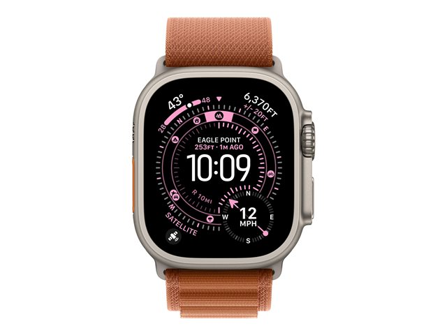 Produktbeskrivning | Apple - Slinga för smart klocka - 49 mm, naturlig titanfinish - Liten storlek - terrakotta - för Watch Hermès Series 9, SE 3, Series 10, Series 11, Series 8, Series 9, Ultra 2, Ultra 3 |