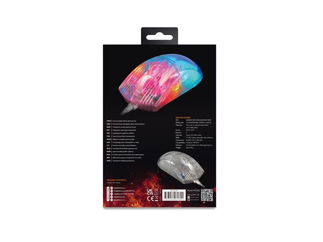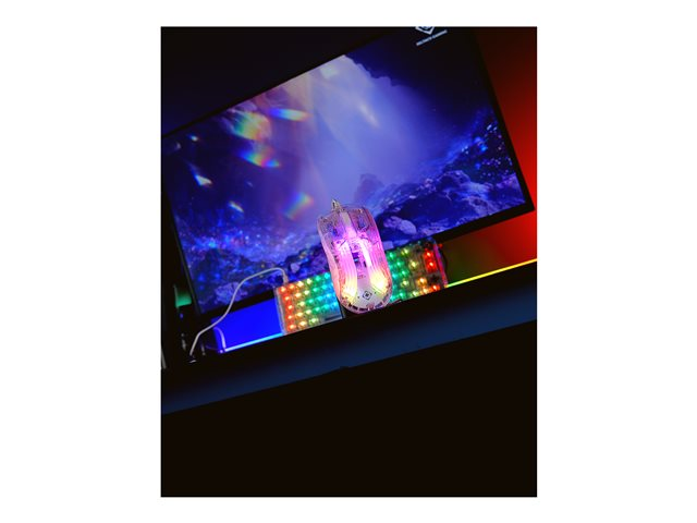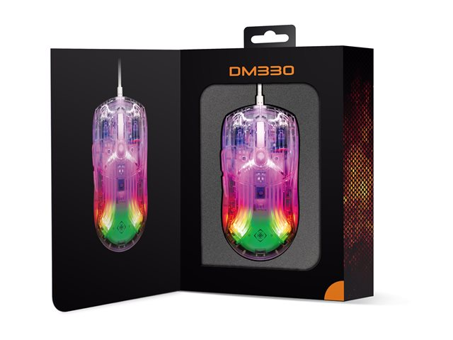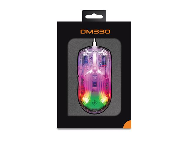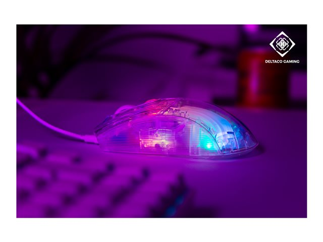 | Produktbeskrivning | DELTACO GAMING DM330 - Mus - optisk - 6 knappar - kabelansluten - USB - transparent |