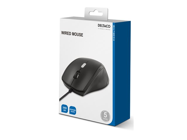 DELTACO MS-774 - Mus - optisk - 3 knappar - kabelansluten - USB - svart