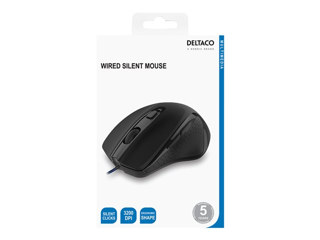 | Produktbeskrivning | DELTACO OFFICE - Mus - optisk - 6 knappar - kabelansluten - USB - svart |