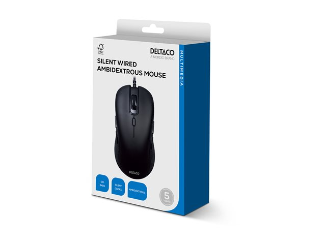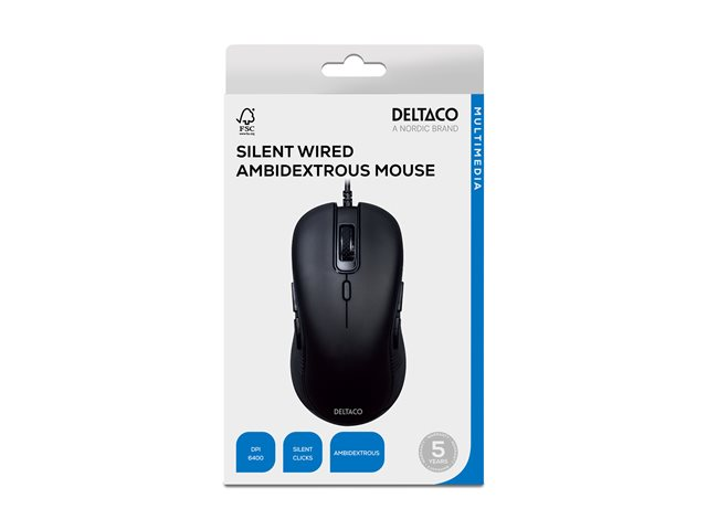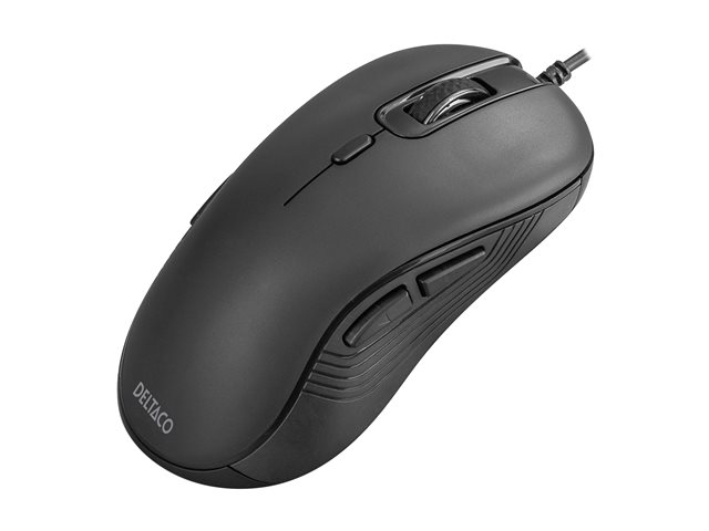 DELTACO - Mus - höger- och vänsterhänta - 6 knappar - kabelansluten - USB - svart