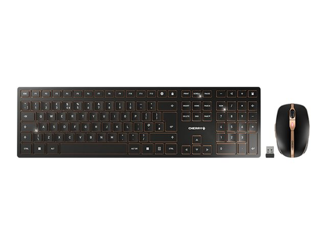 CHERRY DW 9100 SLIM - Sats med tangentbord och mus - trådlös - 2.4 GHz, Bluetooth 4.2 - QWERTY - brittisk - tangentbrytare: CHERRY SX - svart/brons