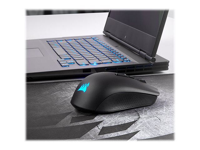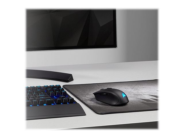 | Egenskaper | Programmerbara knappar, sidohandtag i gummi, fötter av polytetrafluoretylen (PTFE), OMRON-omkopplare, Corsair Utility Engine (CUE), RGB LED-bakgrundsbelysning, Pixart PMW 3325 optisk spelsensor, återuppladdningsbart batteri, blixtsnabb bläddring, Slipstream fjärrlös teknik |