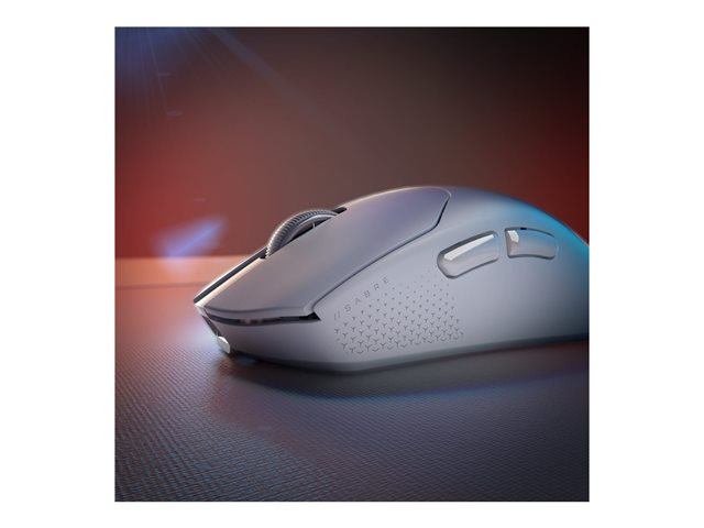 | Produktbeskrivning | CORSAIR SABRE V2 PRO ULTRALIGHT - Mus - optisk - 5 knappar - kabelansluten, trådlös - 2.4 GHz - trådlös USB-mottagare - vit |