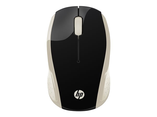Produktbeskrivning | HP 200 - Mus - höger- och vänsterhänta - optisk - trådlös - 2.4 GHz - trådlös USB-mottagare - silkesguld - för Pavilion 24, 27, 590, 595, TP01 |