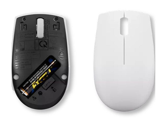 Lenovo 300 Wireless Compact - Mus - with battery - optisk - 3 knappar - trådlös - 2.4 GHz - trådlös USB-mottagare - molngrå - blåsa