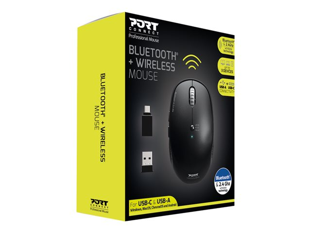 | Produktbeskrivning | PORT Connect Combo - Mus - 5 knappar - trådlös - Bluetooth, 2.4 GHz - trådlös USB-mottagare |