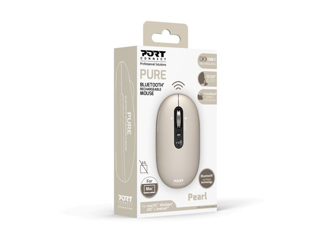 | Produktbeskrivning | PORT Connect PURE COLOR - Mus - laddningsbar - höger- och vänsterhänta - optisk - 5 knappar - trådlös - Bluetooth - pärla |
