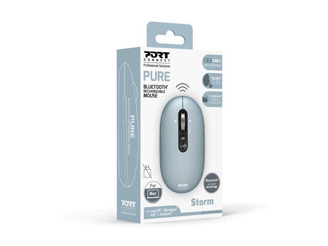 | Produktbeskrivning | PORT Connect PURE COLOR - Mus - laddningsbar - höger- och vänsterhänta - optisk - 5 knappar - trådlös - Bluetooth - storm |