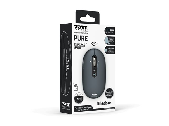 | Produktbeskrivning | PORT Connect PURE COLOR - Mus - laddningsbar - höger- och vänsterhänta - optisk - 5 knappar - trådlös - Bluetooth - skugga |