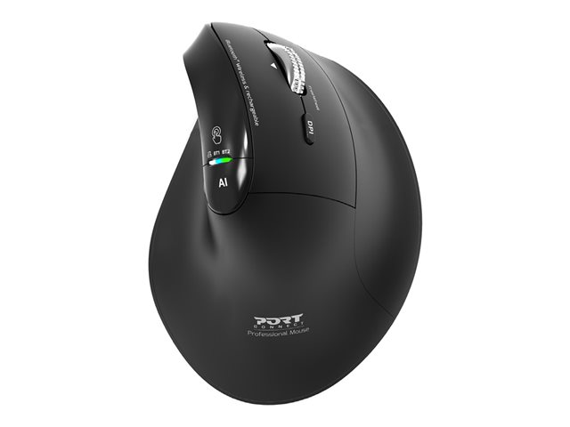 | Produktbeskrivning | PORT - Mus - ergonomisk - optisk - 6 knappar - trådlös - 2.4 GHz, Bluetooth - trådlös USB-mottagare - svart |