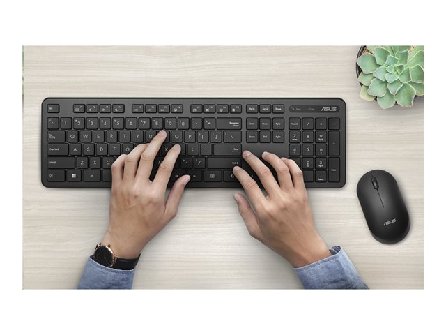 | Produktbeskrivning | ASUS CW100 - Sats med tangentbord och mus - 100% - trådlös - 2.4 GHz - QWERTY - Nordisk - svart |