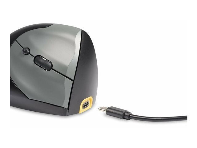 | Produktbeskrivning | BakkerElkhuizen HandShake - Vertikal mus - ergonomisk - högerhänt - optisk - 7 knappar - trådlös, kabelansluten - 2.4 GHz, USB-C, Bluetooth 5.3 - trådlös USB-mottagare - mörkgrå, svart |