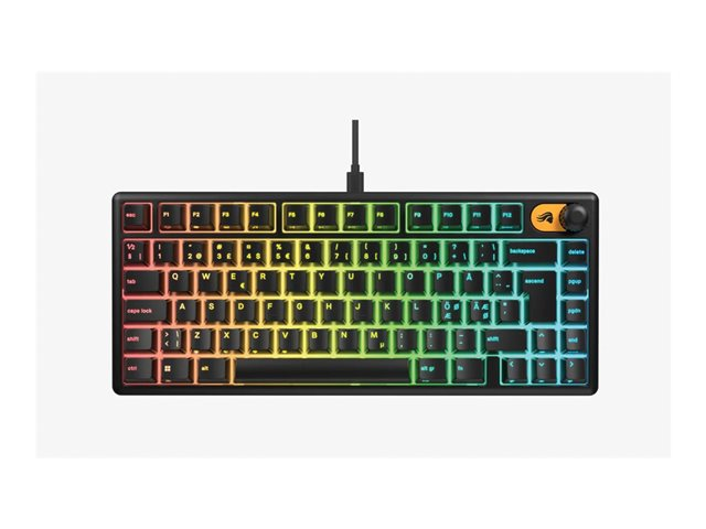 | Produktbeskrivning | Glorious GMMK - Tangentbord - 75% - med vred - backlit - USB - QWERTY - Nordisk - tangentbrytare: MX-Compatible Membrane - svart |