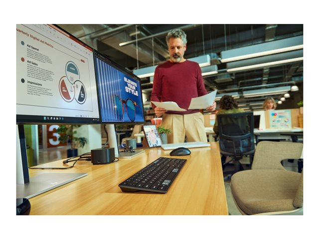| Produktbeskrivning | HP 725 - Tangentbord - flera enheter, uppladdningsbar, drivs av SuperCapacitor - full size - trådlös - Bluetooth, 2.4 GHz - tjeckisk/slovakisk - svart kvällning |
