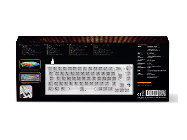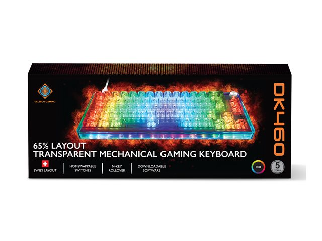 DELTACO GAMING DK460 - Tangentbord - varmbytbara switchar - 65% - bakgrundsbelysning - USB - QWERTZ - tjeckiska - tangentbrytare: KTT - transparent