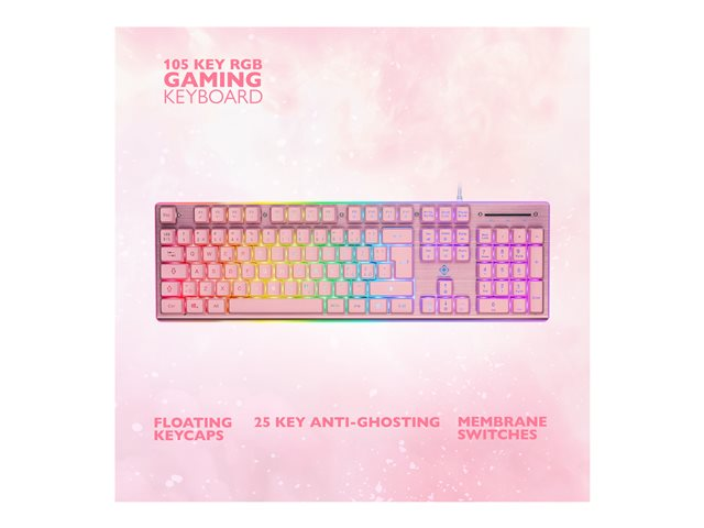 DELTACO GAMING PK75 - Tangentbord - full size - bakgrundsbelyst - USB - QWERTY - Nordisk - rosa