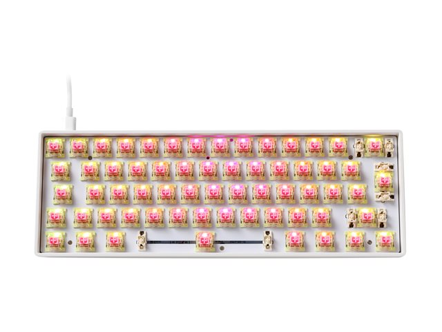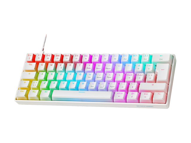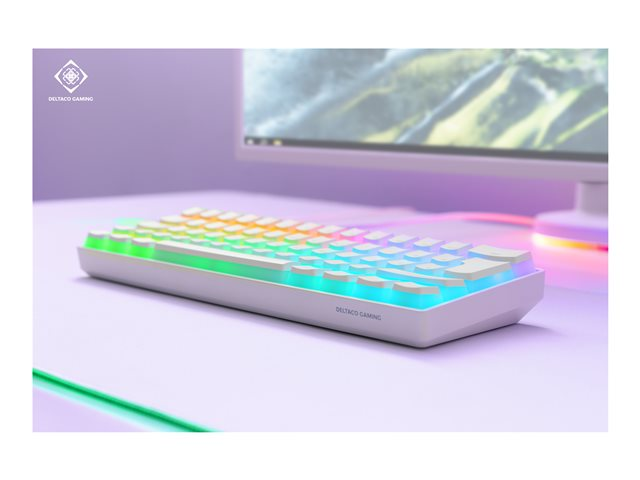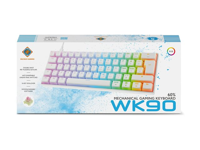 DELTACO GAMING WK90 - Tangentbord - varmbytbara switchar - 60% - bakgrundsbelyst - USB-C - QWERTY - Nordisk - tangentbrytare: Pre Lubricated Linear Pink - vit