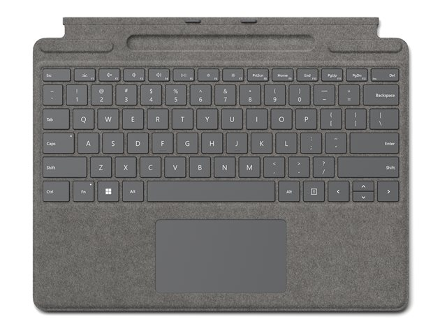 Produktbeskrivning | Microsoft Surface Pro Signature Keyboard - Tangentbord - med accelerometer, pekdyna, Förvarings- och laddningsfack för Surface Slim Pen 2 - platina - kommersiell |