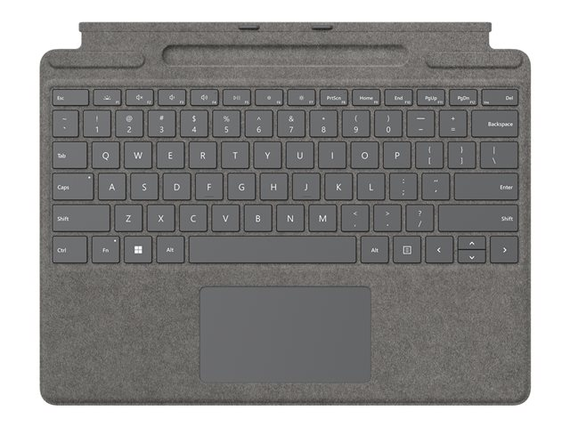 Produktbeskrivning | Microsoft Surface Pro Signature Keyboard - Tangentbord - med pekplatta, accelerometer, Förvarings- och laddningsfack för Surface Slim Pen 2 - AZERTY - fransk - platina - kommersiell - för Surface Pro 8, Pro X |