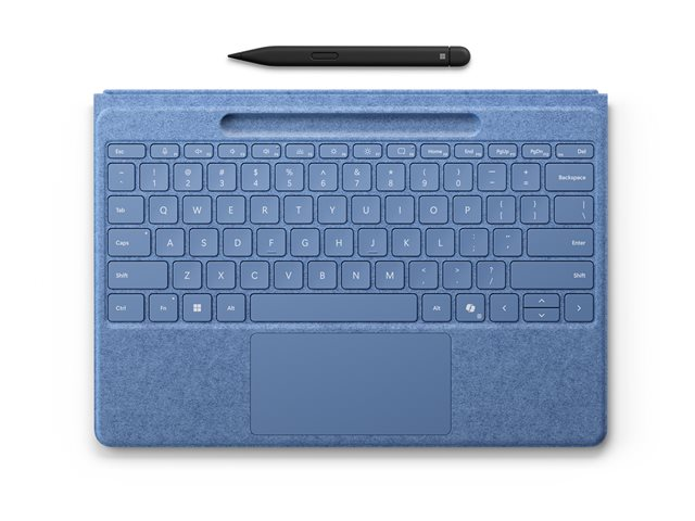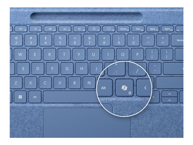 | Produktbeskrivning | Microsoft Surface Pro Flex Keyboard - Tangentbord - med pekplatta, accelerometer, Förvarings- och laddningsfack för Surface Slim Pen 2 - bakgrundsbelyst - trådlös - Bluetooth LE - QWERTZ - tysk - bright sapphire - med Slim Pen - för Surface Pro, Pro 8, Pro 9 |