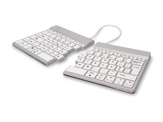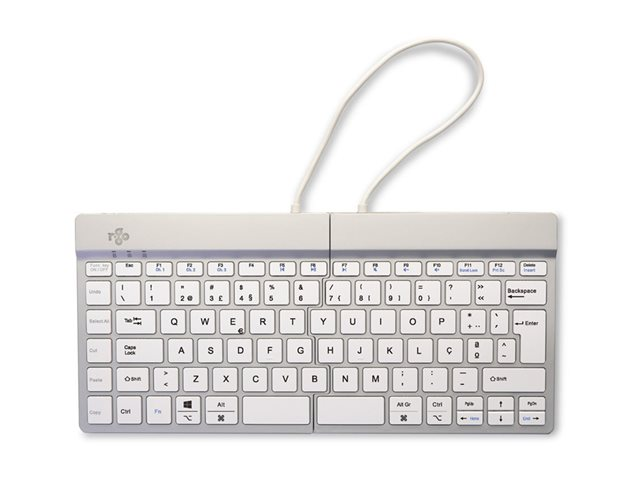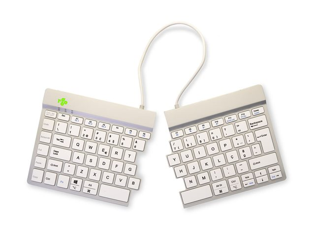 R-Go Ergonomic Keyboard Split break - Version 2 - tangentbord - med integrerad bromsindikator - compact - med magnet attachment, LED indicator - trådlös - Bluetooth 5.0 - QWERTY - portugisisk - vit