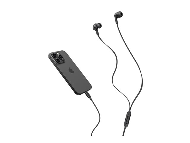| Produktbeskrivning | Belkin SoundForm - Hörlurar med mikrofon - inuti örat - kabelansluten - aktiv brusradering - USB-C - ljudisolerande - svart |