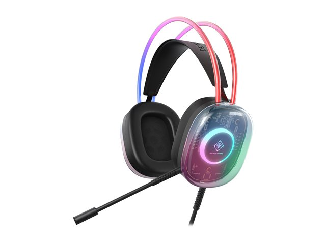 DELTACO GAMING DH230 - Headset - fullstorlek - kabelansluten - 3,5 mm kontakt - halvgenomskinlig, svart
